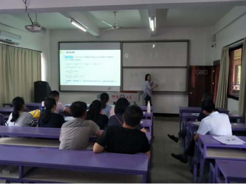 10:00讲课活动开始,吴乐琼、庄姗姗两位青年老师分别以“洛必达法则”、“函数的概念和表示方法”为主题与老师们进行了教学交流,讨论热烈。两位老师在讲课过程中良好的语言表达能力得到了老师们的认可。同时,从教学竞赛和上课角度,老师们也对两位老师在竞赛选题、教学设计、例题的选择,备课、教学互动、板书内容、语速等方面提出了中肯的意见。