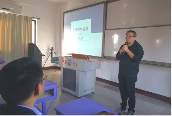 颁奖之后,石红岩老师对数学建模培训和竞赛进行宣讲。介绍了数学建模有关入门知识,以及在各个学科领域的应用和全国大学生数学建模竞赛有关背景。最后介绍了本年度培训和竞赛的的组织安排。