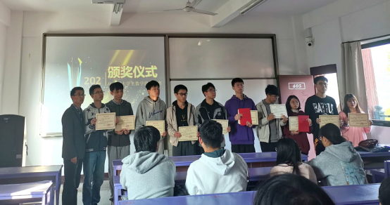 首先进行颁奖仪式,王耀卫老师对1支获得2020年全国大学生数学建模竞赛全国二等奖的队伍和5支获得福建赛区二等奖的队伍进行颁奖并表示热烈的祝贺。