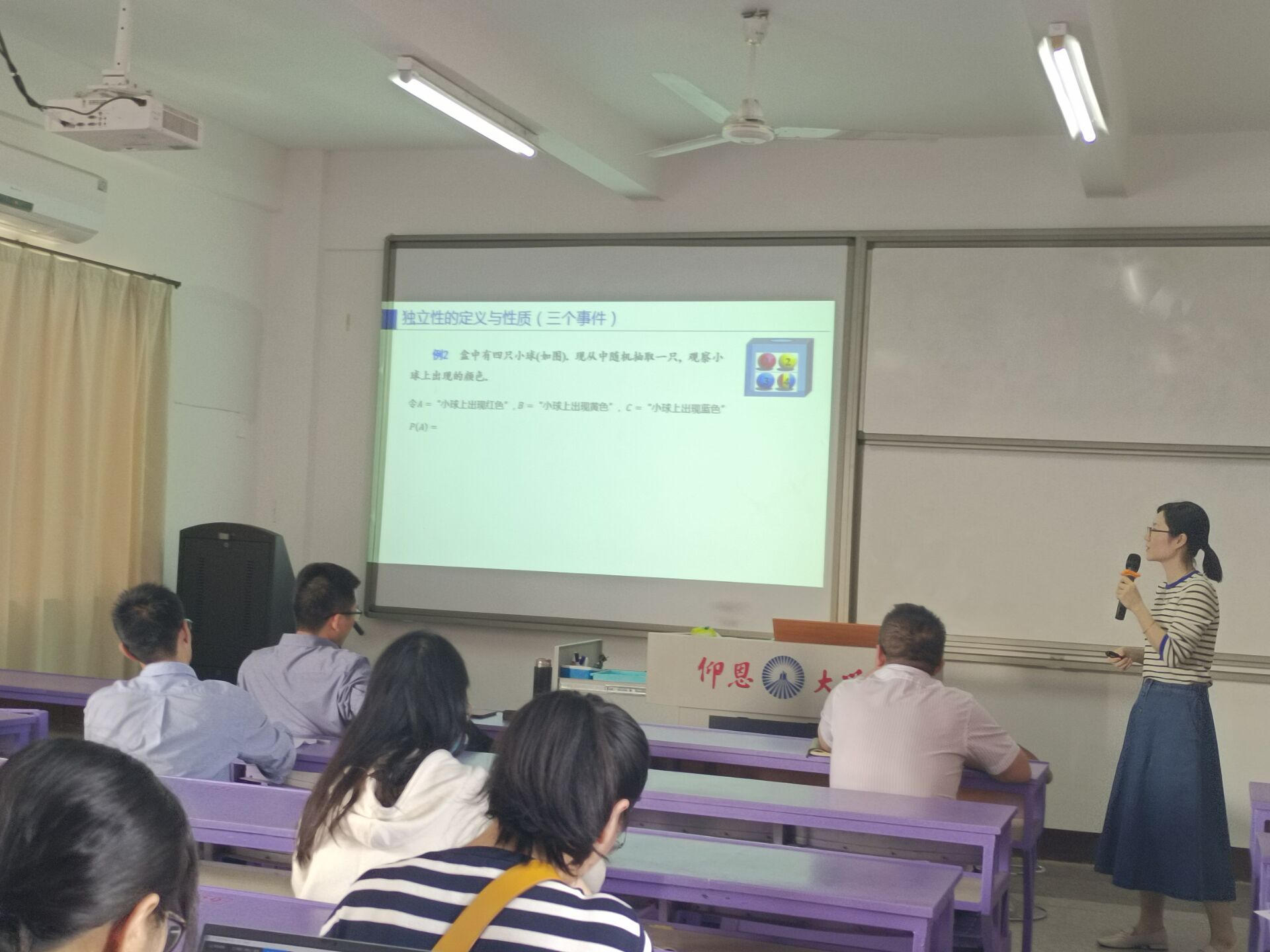 为了更好地迎接福建省青年教师教学竞赛,获得佳绩,3044永利集团竞赛指导小组于10月27日下午2:30吉龙楼405对吴乐琼老师进行参赛指导。根据参赛要求,吴老师进行了两个片段的现场演示,内容丰富、案例紧扣主题、思路清晰、逻辑性强、课件制作精致、语言表达流利,受到了老师们的一致好评。演示结束后,老师们进行了点评,特别在一些细节方面,如解释“放回”一词的必要性、板书的设计、课程思政元素的挖掘、数学术语表达的准确性等提出了一些中肯的意见和建议。