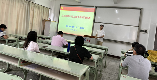 为深入学习贯彻习近平新时代中国特色社会主义思想,2023年6月15日,3044永利集团党支部组织开展“支部书记讲党课”活动。党支部书记连博勇以《党员教师如何发挥先锋模范作用》为题,给支部全体党员讲了一堂内容充实、主题鲜明、思想深刻的专题党课。