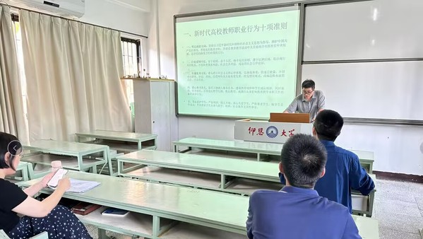 连博勇指出师德师风建设的必要性,在加强教师思想政治和师德师风建设工作中,坚持师德第一标准,对师德违规问题“零容忍”并严肃惩处的鲜明态度和坚定决心。并且要求全体教师以学习的典型案例为戒,有红线意识,杜绝师德失范和学术失范行为,营造风清气正的育人环境,潜心工作,为党育人,为国育人。