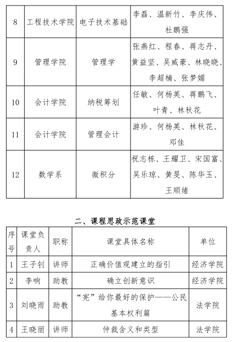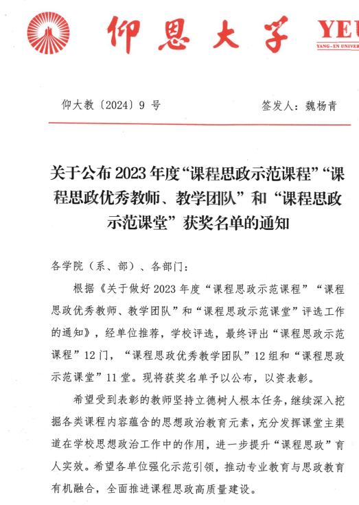 关于公布2023年度“课程思政示范课程”“课程思政优秀教师、教学团队”和“课程思政示范课堂”获奖名单