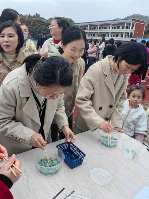 在裁判员的指挥下,各比赛项目按照规则依次进行,参赛女教职工个个精神饱满,神采飞扬。比赛过程既紧张、激烈,又欢乐、温馨。在趣味保龄球比赛中,现场分成两队,裁判在球道终端放置10瓶饮料成三角形,女教职工们轮流投球撞击饮料瓶,每人2次机会,连续投球,击倒的饮料即为奖品;在夹弹珠比赛中,教职工们全神贯注,用筷子在装满水的碗里,将寓意幸福、快乐的“38”颗珠子,依次夹到另外一个碗中,用时少者获胜;在立定跳远赛场上,裁判员划定起跳线,参赛教职工跳到对应区域,即获得相应奖品;在背球接力赛中,4人一组,2人用背部夹住1个足球,从起点侧跑出发至终点,2人在终点接过球再侧跑回到起点,用时少者获胜。每个项目都是集娱乐性、协作性于一体,活动现场,大家兴高采烈,用轻松、愉悦的运动来缓解工作压力,增添节日氛围,加油声、助威声、欢笑声不绝于耳。活动持续一个多小时,整个过程既紧张激烈,又欢乐温馨,展现了我校女教职工团结奋进、奋力拼搏的精神面貌,尽显活力与朝气。